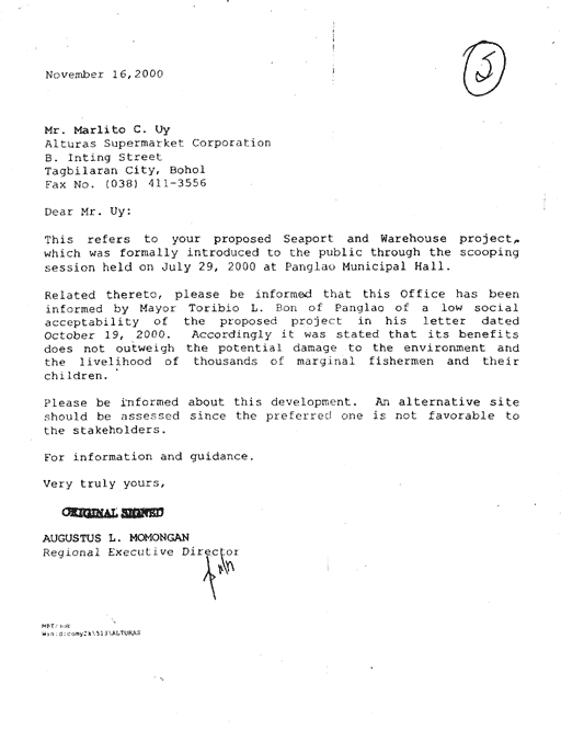 Thank you for the insight. Here are a few items which may interest or distinterest you. 1. How was it that since the application for for ECC in 2000 was denied why is AGC using the same scoping materials and previous documents from the denial. Would it not be prudent since it is a new application, new local government, 3 years had lapse that a new scopings should occur? 2. Shouldn't there be second level scoping with public consultation? 3. The processing period requirement to re-apply is 120 days. According to what I have AGC re-applied on April 29, 2003 and was approved May 28, 2003. A rather fast forward decision wouldn't you say? Isn't that a violation of the 120 days? 4. Shouldn't EIARC conducts another site inspection and another public hearing. 5. What about the code of conduct of Good Environmental Goverance sworn which state: #1 "I will perform my duties with an awareness that I must develop, protect, and judiciously untilize the natural wealth of my nation for public good". It did not say for corporate good. #4 I will hold myself personally and solely accountable to the Filipino people or all my actions, in line with the ethics of professionalism, policies of organizational discipline, and the laws and regulations of the Philippines, the Philippines Service code and the Department of Environmental and Natural Resources. #6 I will insure that DUE DELIGENCE is taken before any decision or actions are made or implemented that will concern either directly or indirectly present and FUTURE Filipinos, their heritage, and they RESOURCES they rely upon. #8 I will treat work colleagues, stakeholders and other community MEMBER with respect, valuing their views and decisions involving them in the protection of the environment. MY aunt who is 82 years old attended one of the scopings. Attendance were taken and according to her no votation occurred and everytime she stood up she was boo'd and overuled. This was in the presence of the so called professionals or specialist hired by AGC. Is this fair deal? And she is not alone as there are many silent people there who either are not well informed or helpless to say anything. Let us not forget the local petitioners who signed and published in the papers and the other concern sectors previosuly mentioned not counting many members of the Bohol Forum especially now that dual citizenhip will go into effect. What about them? US? Since, you are a lawyer what can we do at this point. A pro bono consultation will be appreciated. Thank you. Sincerely, Nico Haight MN-Tangnan, Panglao |