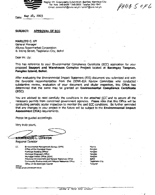 | It would be difficult to generate a thorough and objective assessment about the manner in which DENR granted an ECC, three years after their, ASC's, preceding request was turned down, because the correspondences from Mr. Momongan, and Mr. Lipayon are three years apart. All the materials vitally needed to make a complete assessment are not presented in this website.